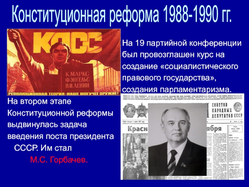 Горбачев, председателем Совета Министров СССР – Н.И. Рыжков. Началось преобразование