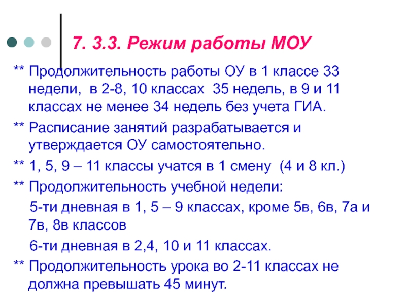 7.5.4. Организация образовательного процесса в ОУ должна быть регламентирована: