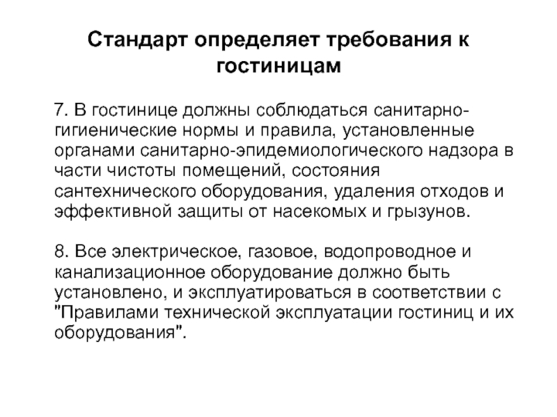 Слайд 9Стандарт определяет требования к гостиницам