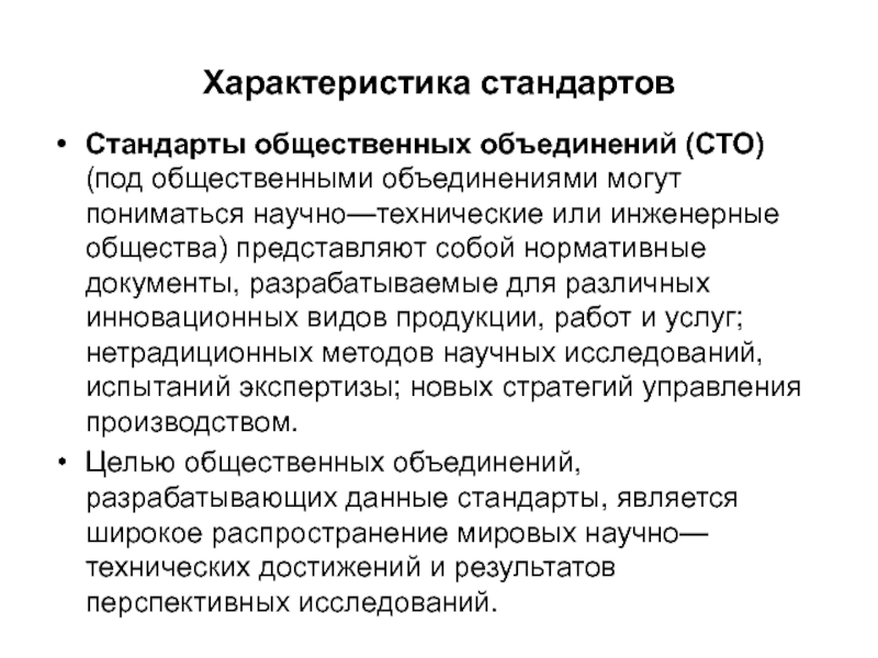 Целью общественных объединений, разрабатывающих данные стандарты, является широкое распространение мировых научно—технических достижений и результатов перспективных исследований.