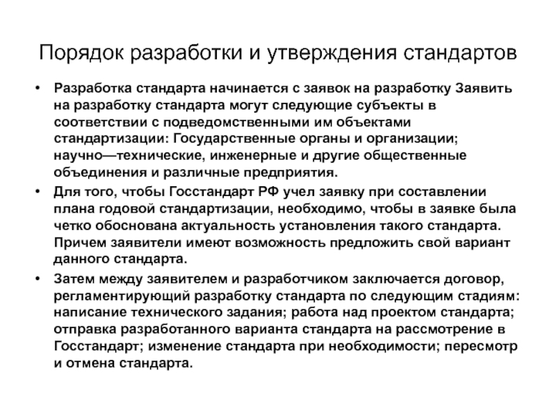Слайд 30Порядок разработки и утверждения стандартов