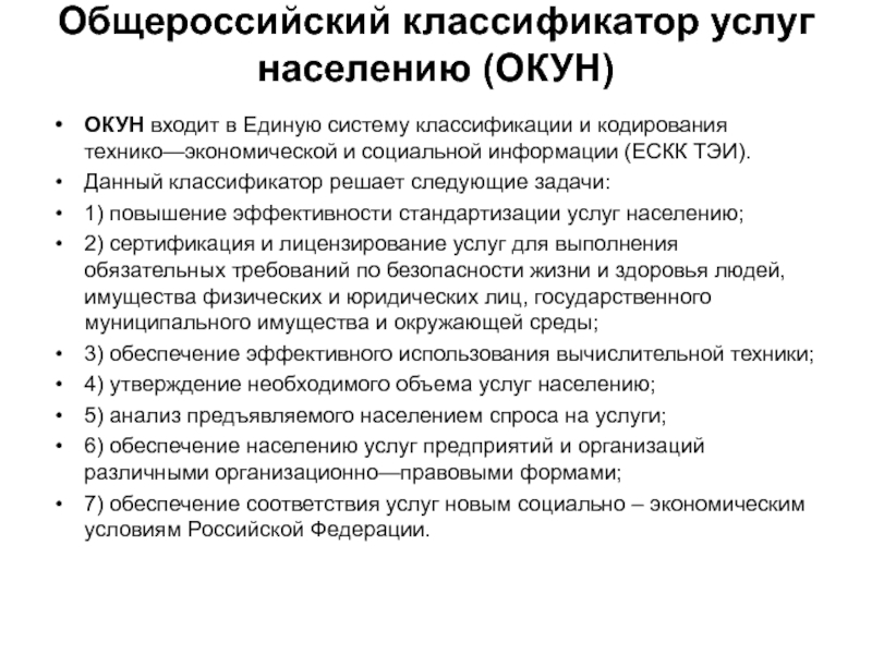 Слайд 23Общероссийский классификатор услуг населению (ОКУН)