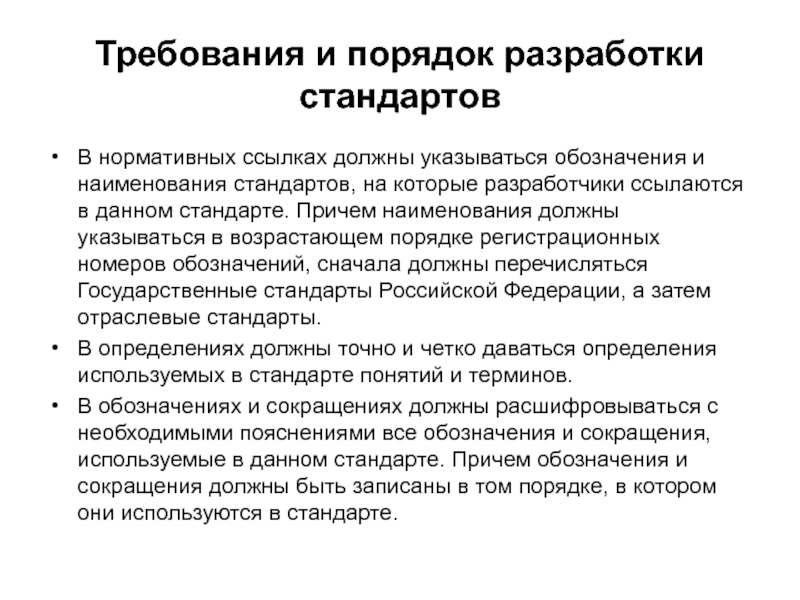 Слайд 26Требования и порядок разработки стандартов