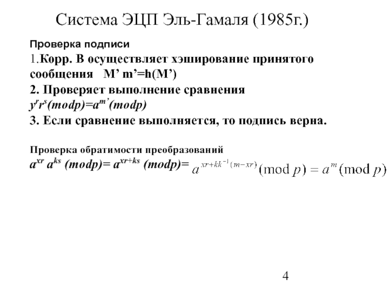 1.Корр. А осуществляет хэширование М m=h(M), m