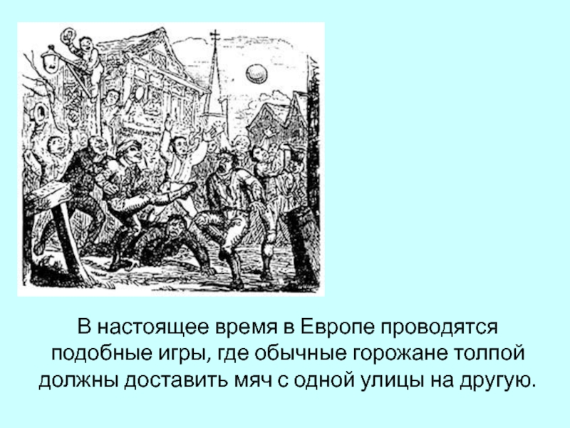 Слайд 45Именно в этот период популярность подвижных игр с мячом становится