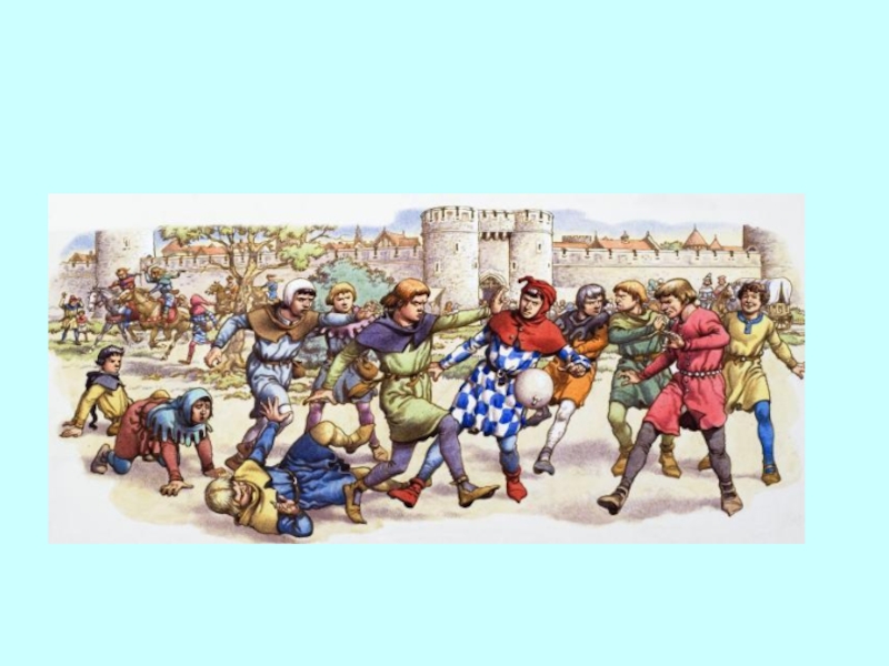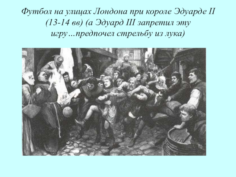 Слайд 16Футбол на улицах Лондона при короле Эдуарде II (13-14 вв)