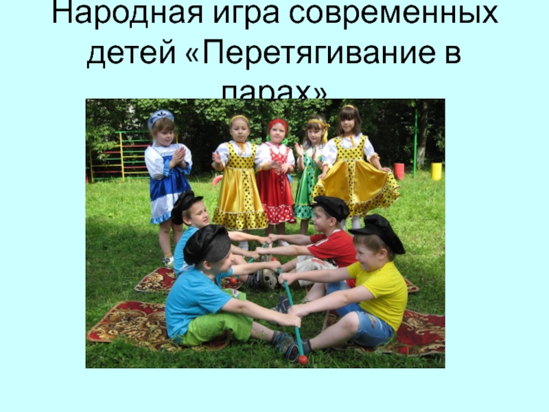 Слайд 75Народная игра современных детей «Перетягивание в парах»