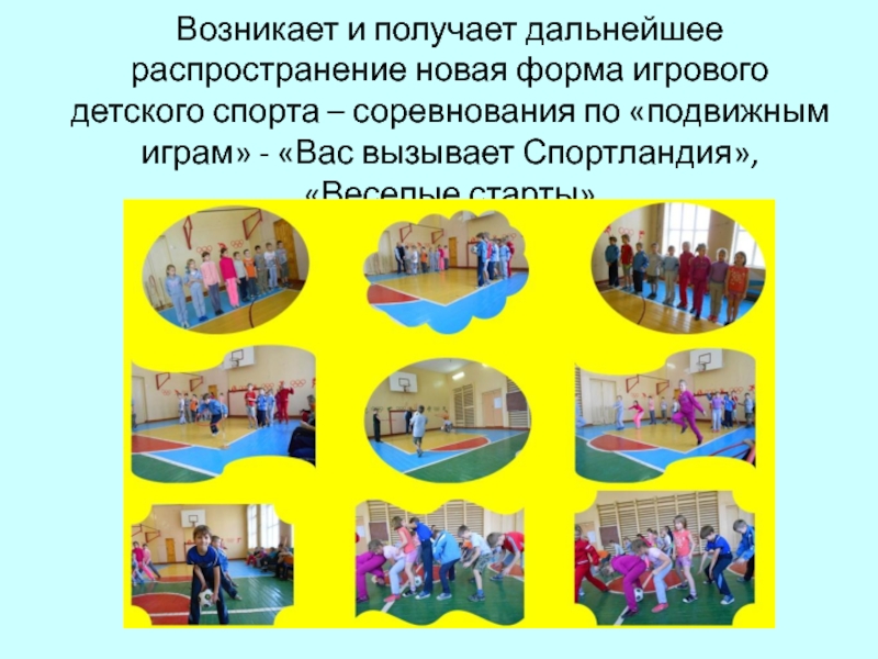 Слайд 66Возникает и получает дальнейшее распространение новая форма игрового детского спорта