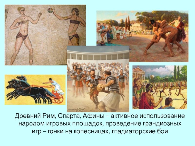 Слайд 12Древний Рим, Спарта, Афины – активное использование народом игровых площадок,