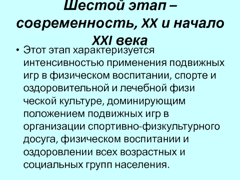 характеризуется интенсивностью применения подвижных игр в физическом воспитании, спорте и