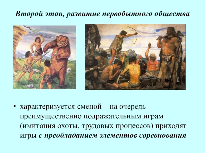 подражательным играм (имитация охоты, трудовых процессов) приходят игры с преобладанием