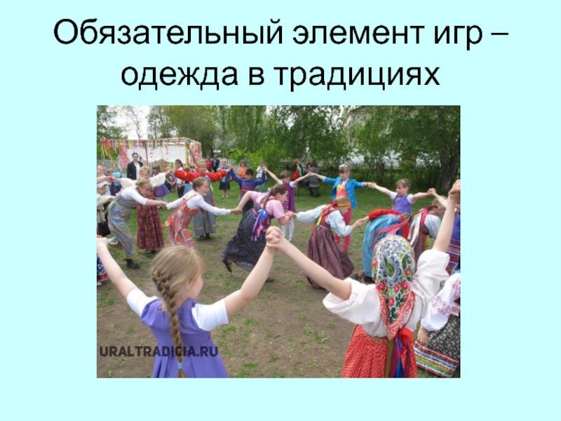 Слайд 76Обязательный элемент игр – одежда в традициях