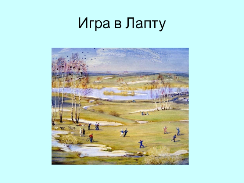 стремились загнать мяч на территорию противника. Играли в лаптях на
