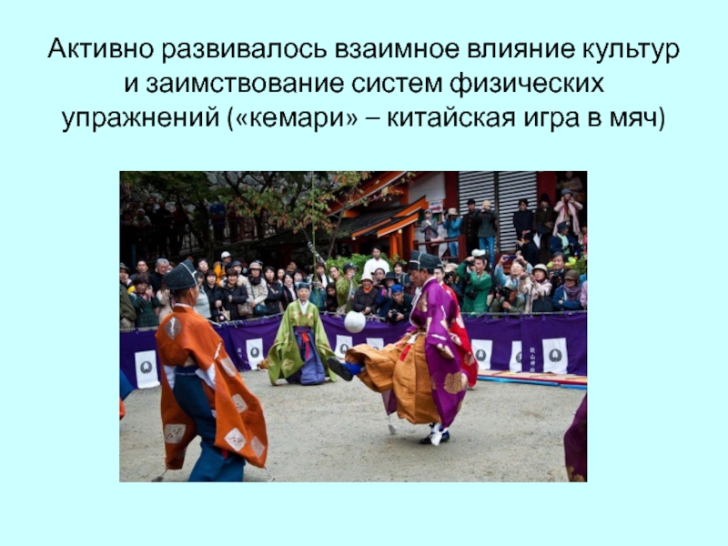 Слайд 26Активно развивалось взаимное влияние культур и заимствование систем физических упражнений