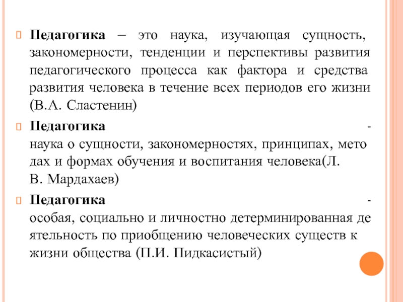 Педагогика -наука о сущности, закономерностях, принципах, методах и формах обучения и воспитания человека(Л.В. Мардахаев)