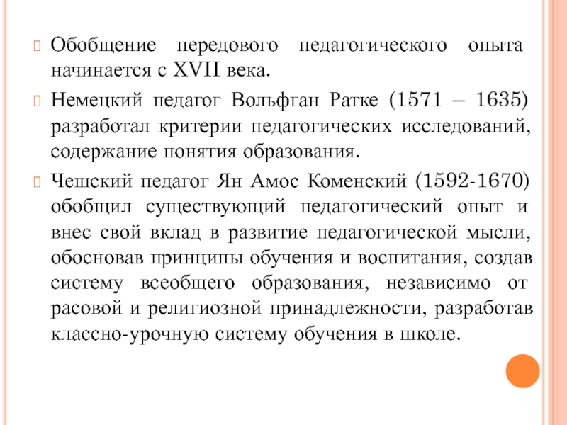 Слайд 9Обобщение передового педагогического опыта начинается с XVII века.