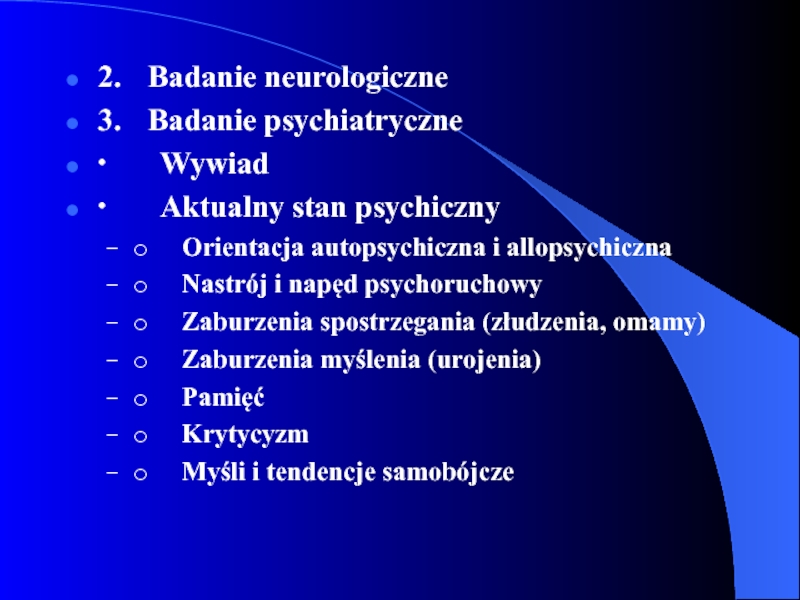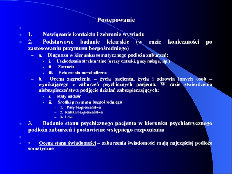 3. Badanie stanu psychicznego pacjenta w kierunku psychiatrycznego podłoża zaburzeń i postawienie wstępnego rozpoznania