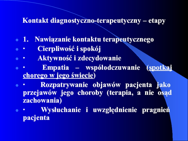 Слайд 6Kontakt diagnostyczno-terapeutyczny – etapy