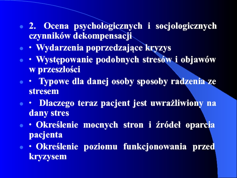Слайд 72. Ocena psychologicznych i socjologicznych czynników dekompensacji
