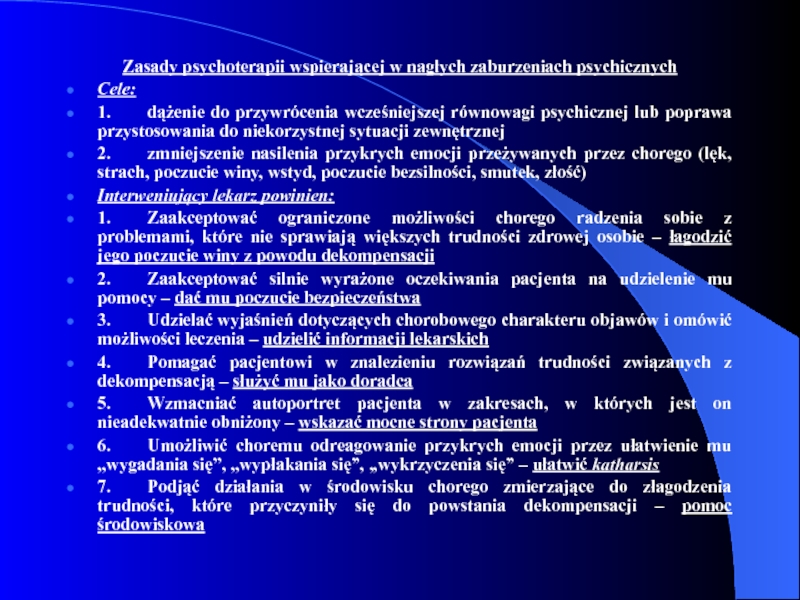 Слайд 16Zasady psychoterapii wspierającej w nagłych zaburzeniach psychicznych