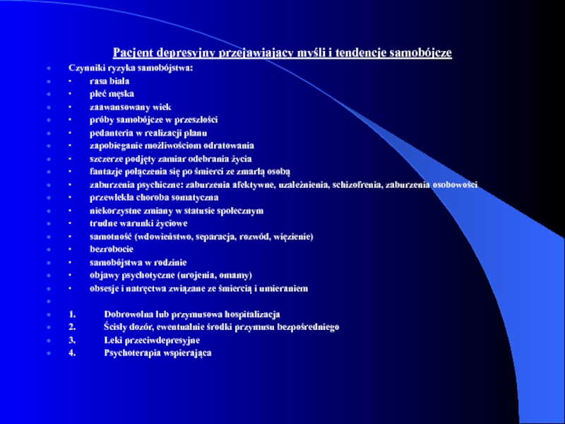 Слайд 18Pacjent depresyjny przejawiający myśli i tendencje samobójcze