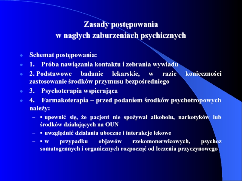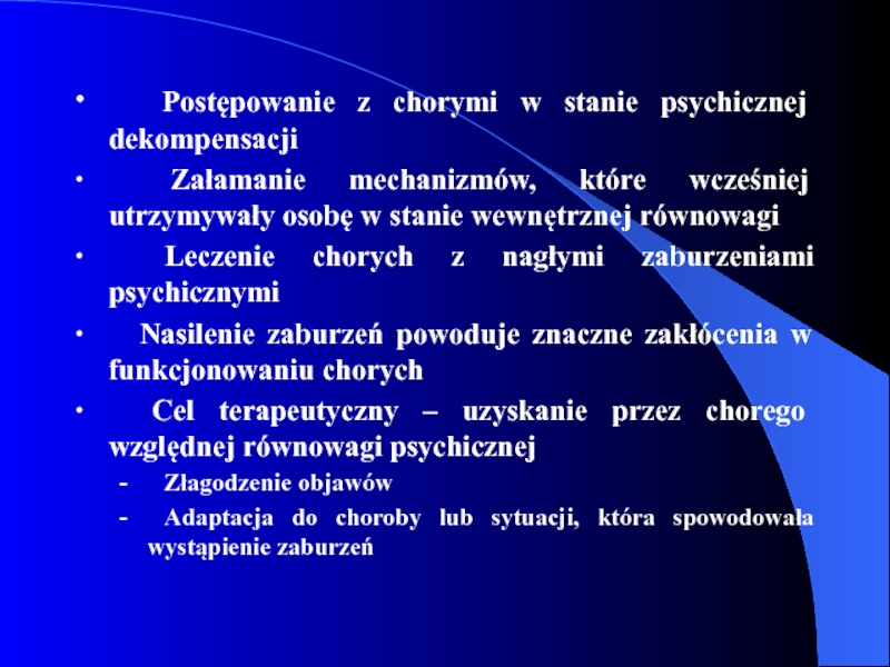 Слайд 2· Postępowanie z chorymi w stanie psychicznej dekompensacji