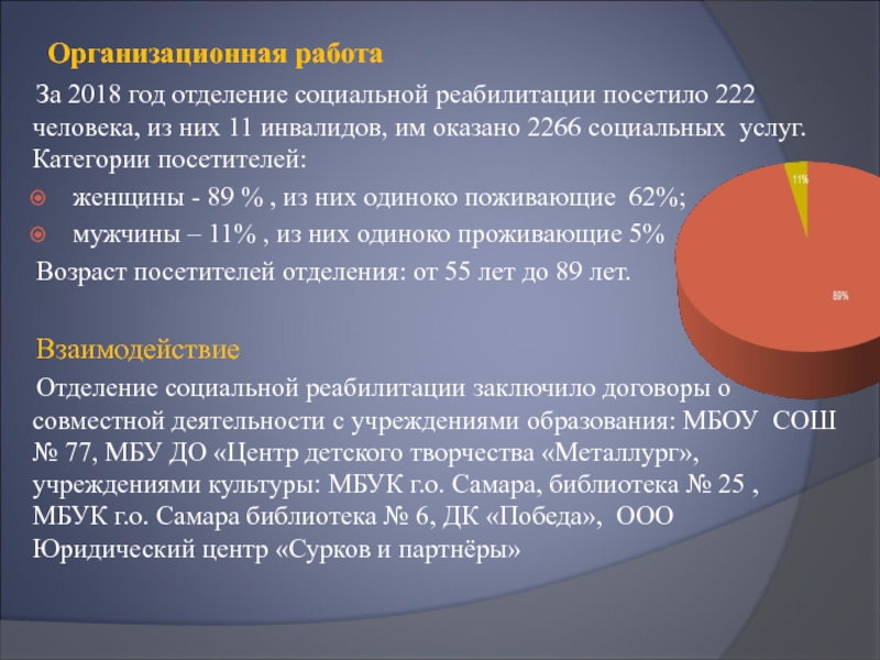 За 2018 год отделение социальной реабилитации посетило 222 человека,