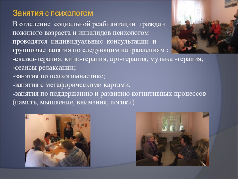 Слайд 4В отделение социальной реабилитации для организации досуга и общения работают