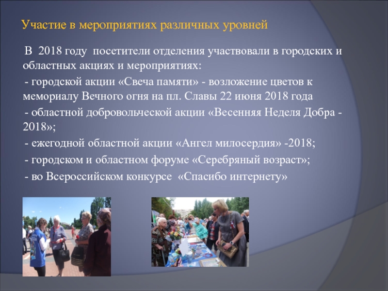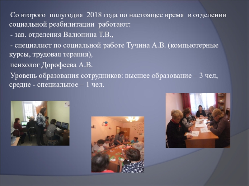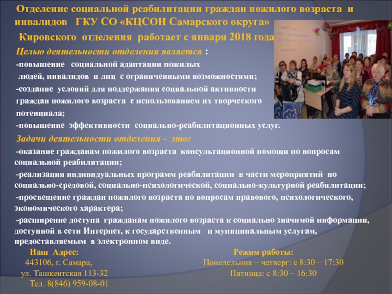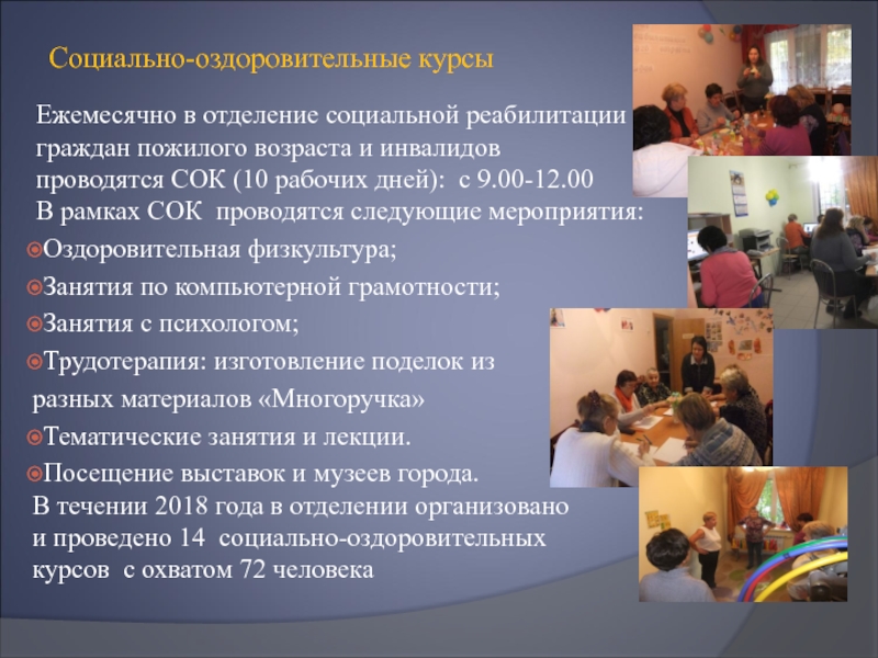 Слайд 22С 2018 года в отделении социальной реабилитации граждан пожилого возраста