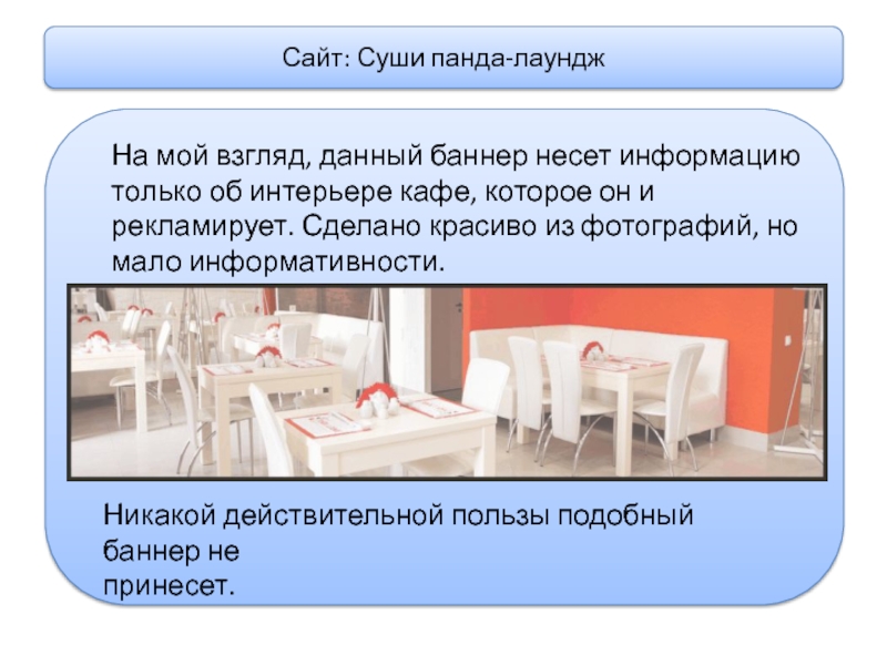 баннер несет информацию только об интерьере кафе, которое он и