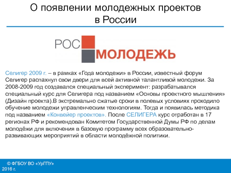 2016 г.ФГБОУ ВО «Уральский государственный педагогический университет»
