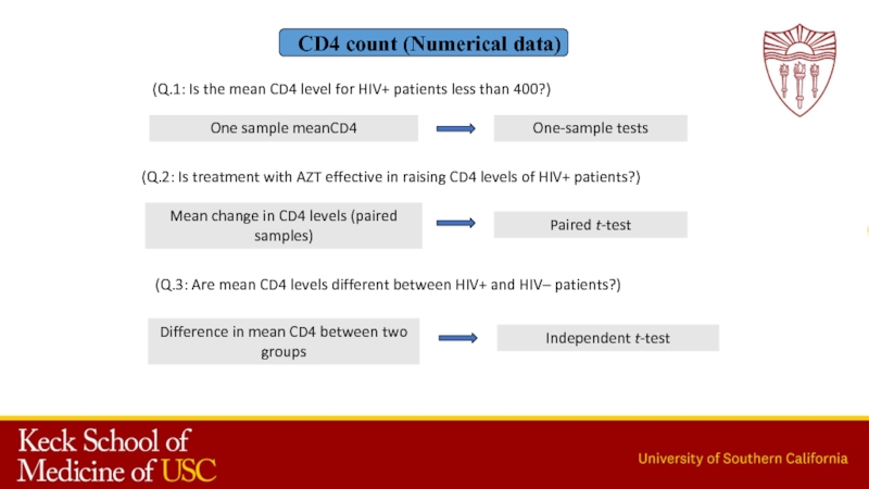 (Q.1: Is the mean CD4 level for HIV+ patients less than 400?)