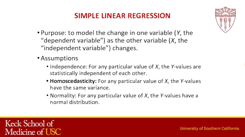 Normality: For any particular value of X, the Y-values have a normal distribution.