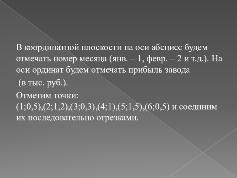 Слайд 3В координатной плоскости на оси абсцисс будем отмечать номер месяца