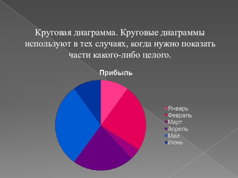 Слайд 6Круговая диаграмма. Круговые диаграммы используют в тех случаях, когда нужно