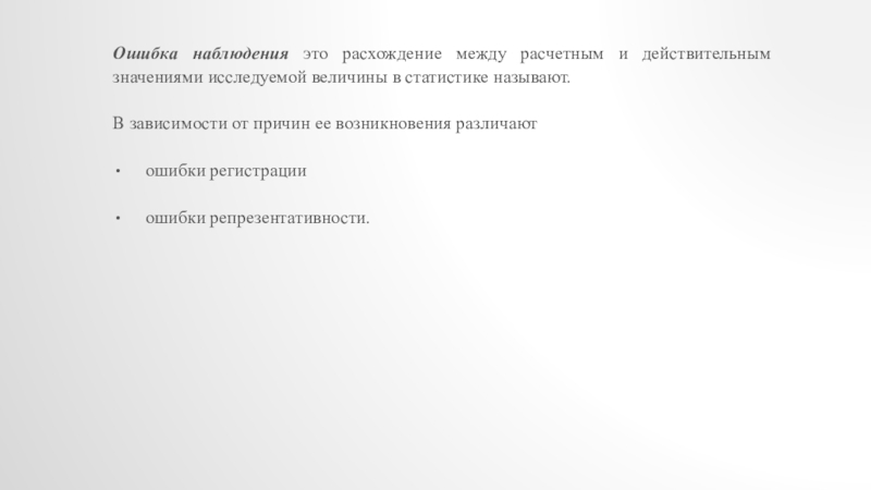 Слайд 14Ошибка наблюдения это расхождение между расчетным и действительным значениями исследуемой