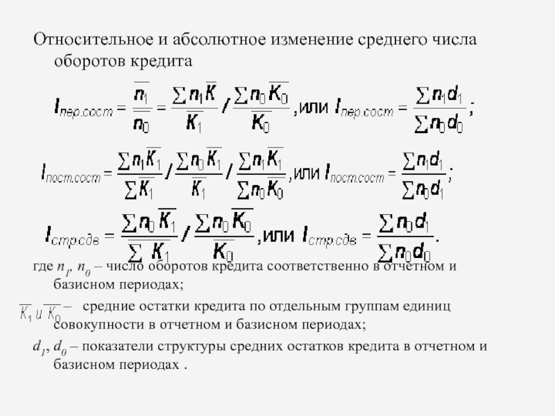d1, d0 – показатели структуры средних остатков кредита в отчетном и базисном периодах .