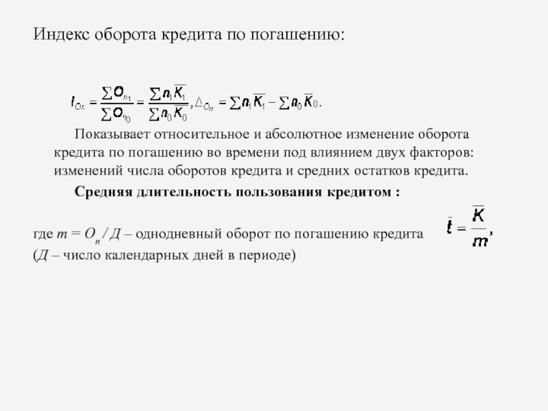 Слайд 6Относительное и абсолютное изменение среднего числа оборотов кредита
