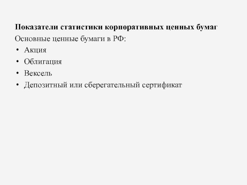 Слайд 14Показатели статистики корпоративных ценных бумаг