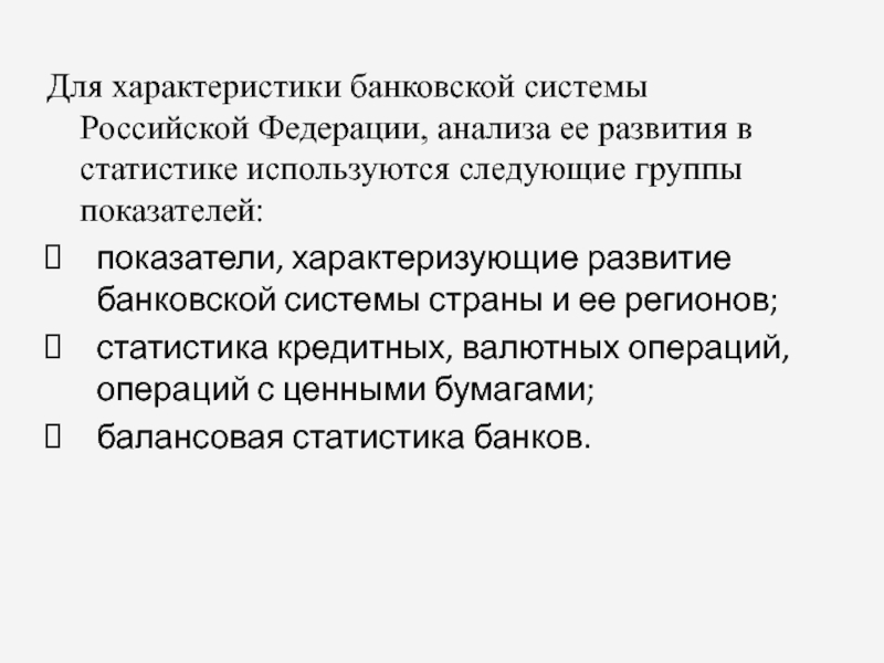 Слайд 3Для характеристики банковской системы Российской Федерации, анализа ее развития в