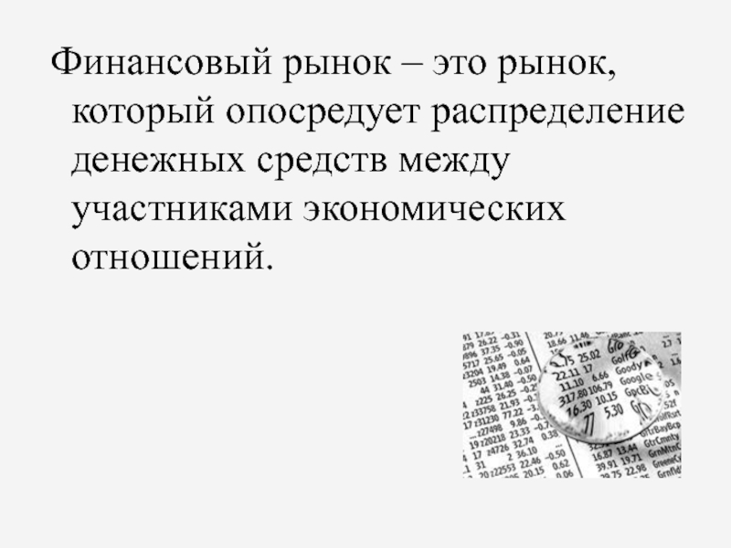 Слайд 12 Финансовый рынок – это рынок, который опосредует распределение денежных