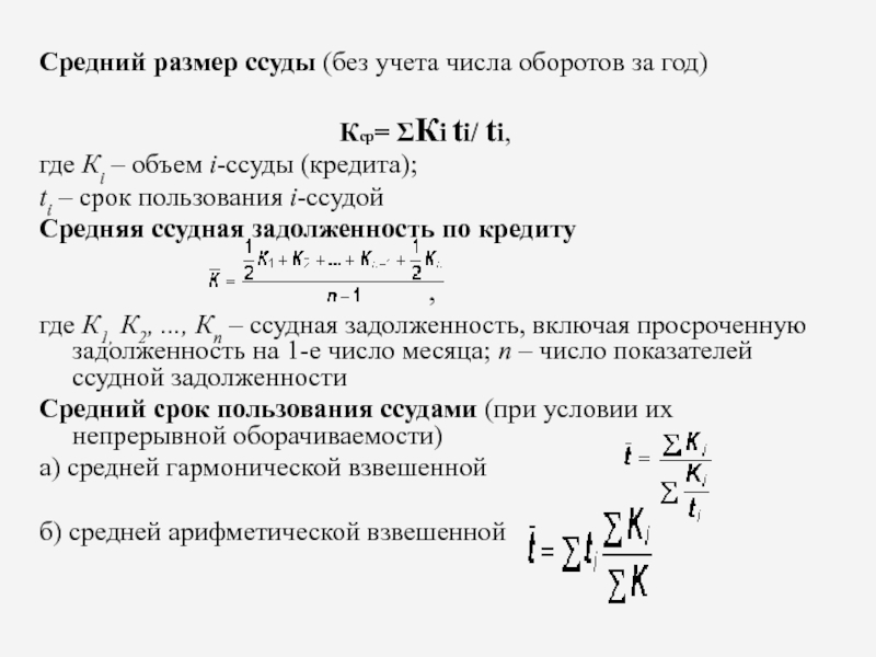 где К1, К2, ..., Кn – ссудная задолженность, включая просроченную задолженность на 1-е число месяца; n – число показателей ссудной задолженности