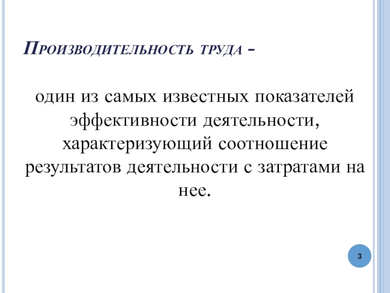 Производительность труда -один из самых известных показателей эффективности деятельности, характеризующий соотношение результатов деятельности с затратами на нее.