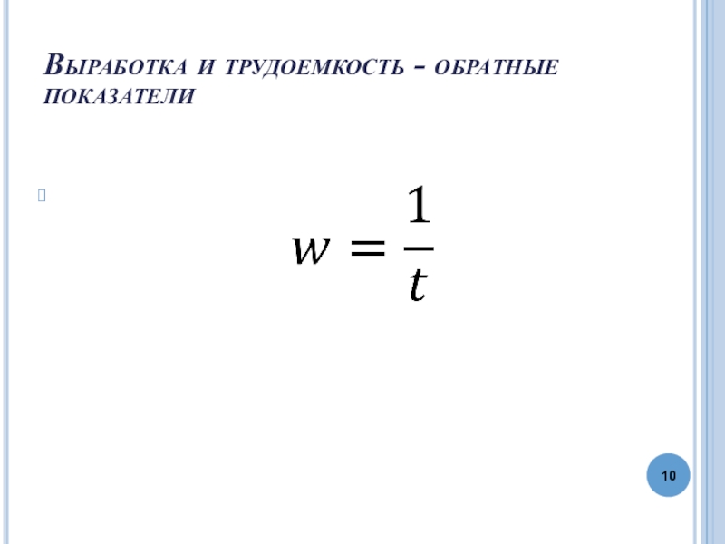 Слайд 10Выработка и трудоемкость - обратные показатели