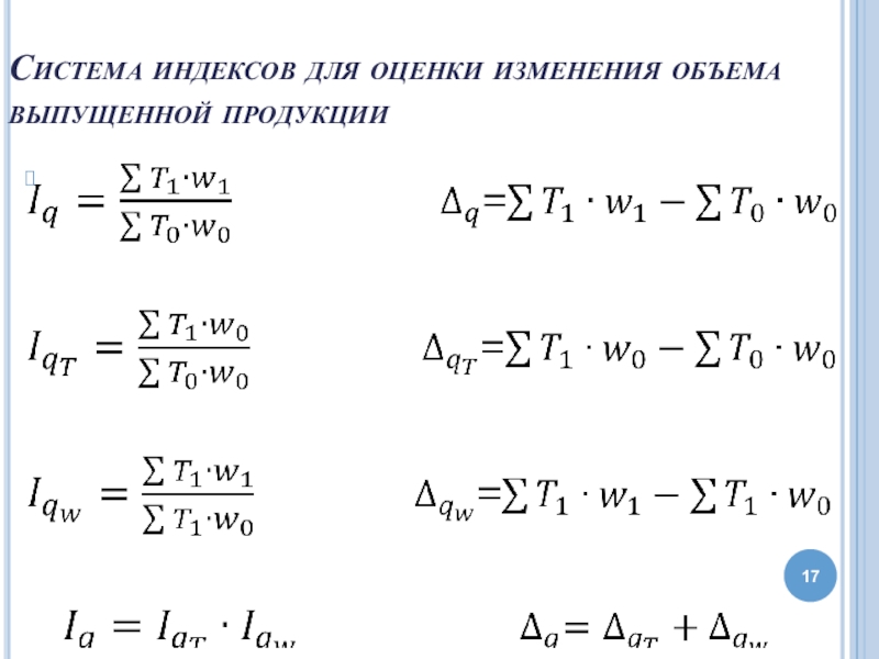 Слайд 17Система индексов для оценки изменения объема выпущенной продукции