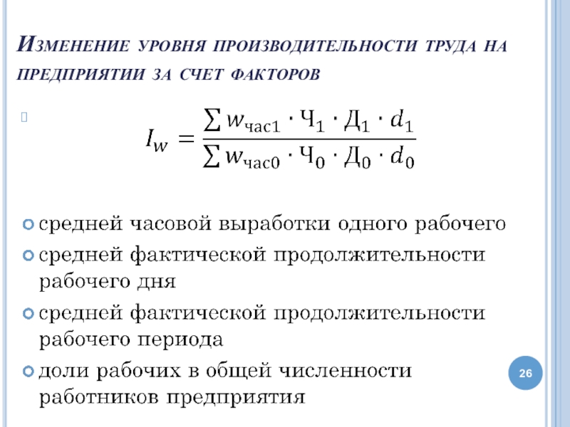 Слайд 26Изменение уровня производительности труда на предприятии за счет факторов