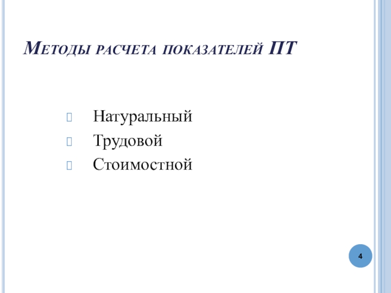 Методы расчета показателей ПТНатуральныйТрудовойСтоимостной