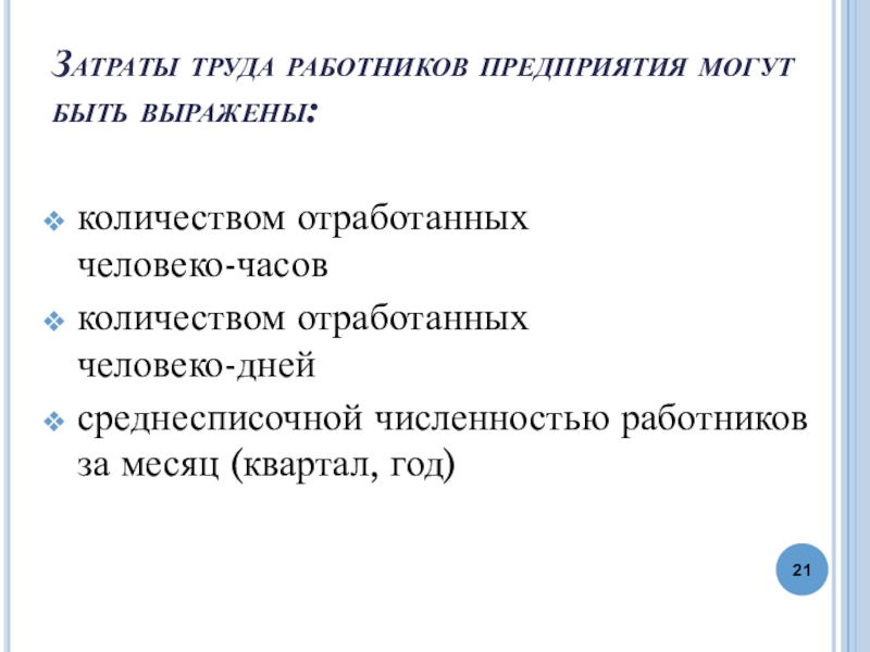 Слайд 21Затраты труда работников предприятия могут быть выражены: