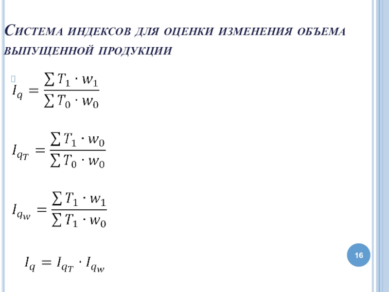 Слайд 16Система индексов для оценки изменения объема выпущенной продукции