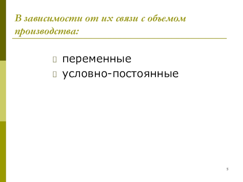 В зависимости от их связи с объемом производства:переменныеусловно-постоянные